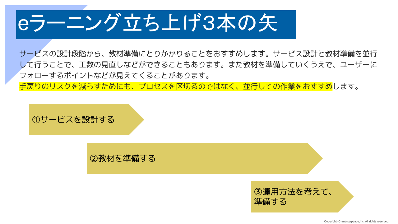 ・eラーニング立ち上げ3本の矢