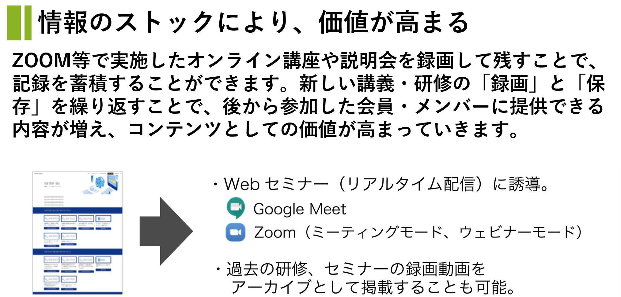 また、情報がよく更新されメンテナンスされていると、会員はサービスが行き届いているという印象を持ちます。限られた会員に向けて提供される環境は、グループとしての価値を高めブランド力の向上も期待できます。