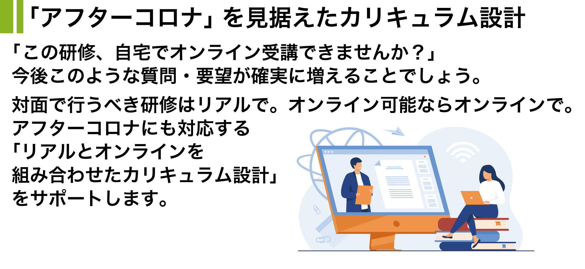 後戻りできないテレワーク時代に、今まで主に対面で行われてきた人材育成も非対面型への転換が必要です。