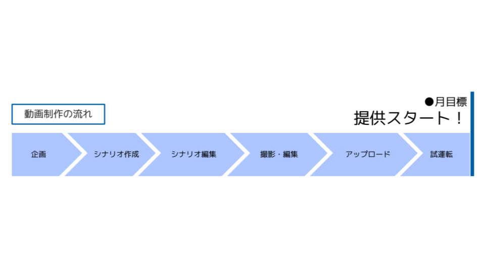 動画教材を活用するタイミングに合わせて、まずは締め切りを設定しましょう。その後、必要な制作スケジュールを逆算します。 「制作体制」や「スケジュール」が決まった後も、進行状況に応じて臨機応変に変更しながら対応できるよう、余裕を持って計画を立てましょう。