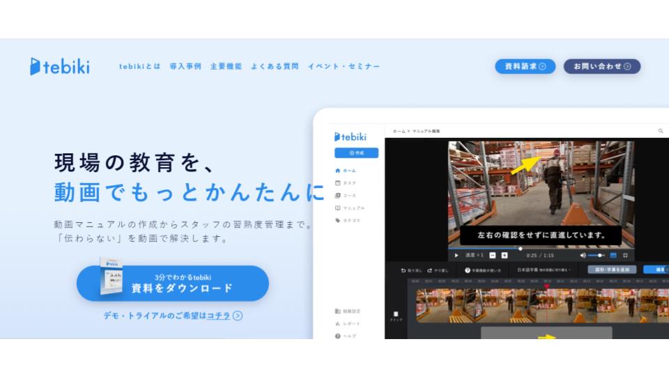 ① 動画教育システム「tebiki」は現場仕事が多い会社様や、外国人スタッフへの共有にもおすすめ