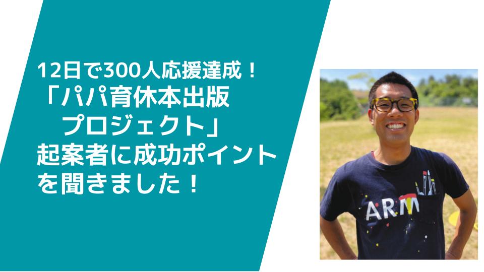 その第一弾企画として動いていた「パパ育休本プロジェクト」ですが、なんと開始12日で応援者300人を集めることに成功し、書籍化が決定。現在著者さんを中心とするプロジェクトチームと編集者で出版に向けて動いています。