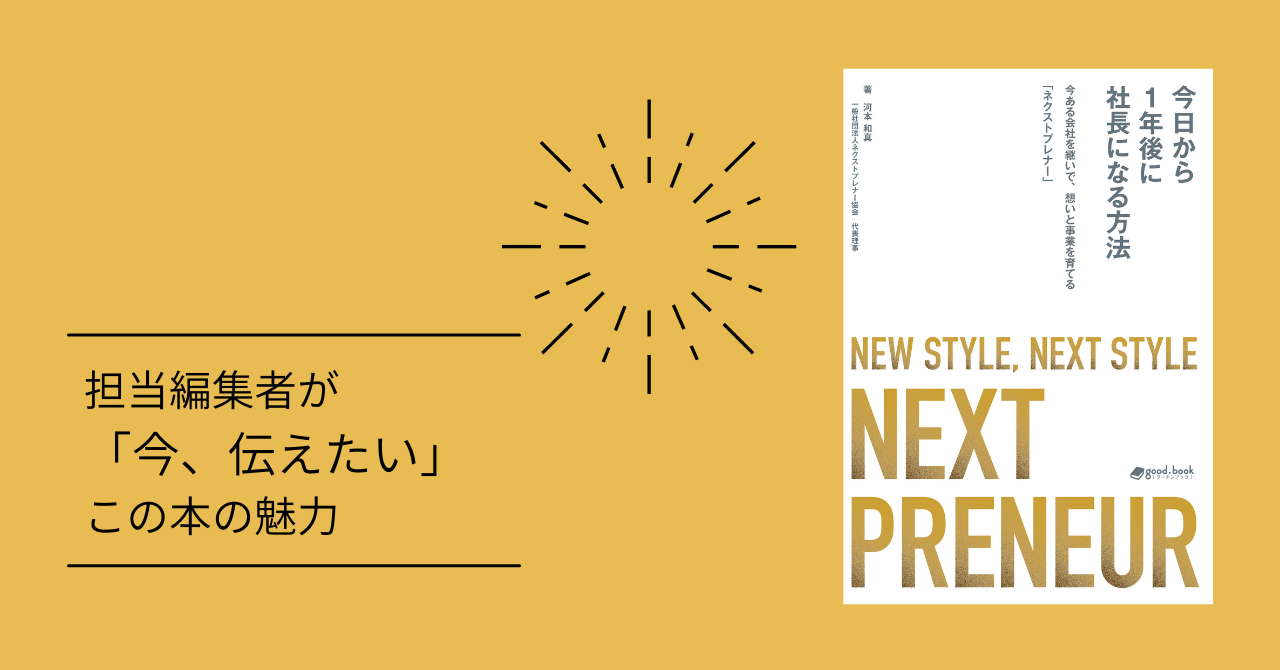 サブタイトルにある「ネクストプレナー」とは、次の経営者となる人を意味しています。