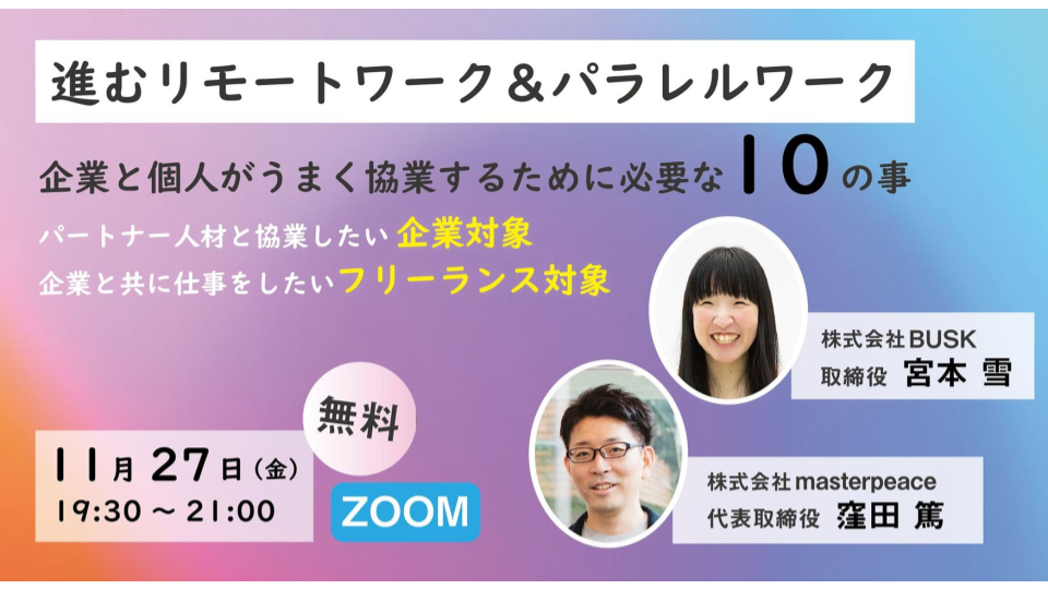 企業側・フリーランスのそれぞれがうまく協業するためのポイントを意識することで、変化の大きい時代でも両者にとってより良い価値づくりに活かせればと思っています。