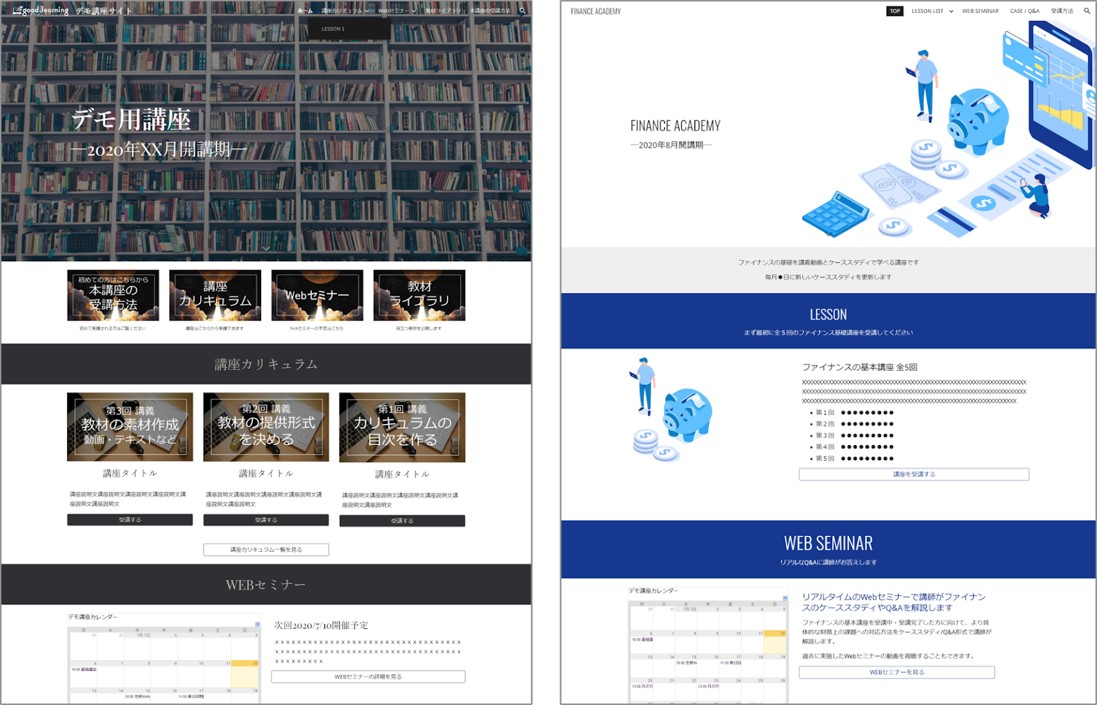 ※講座内容に適したサイトデザイン、サイト構成をカスタマイズしてご提供します。よりスピーディーに開講されたい方にはすぐに使えるWeb講座サイトのテンプレ―トをご用意しております。