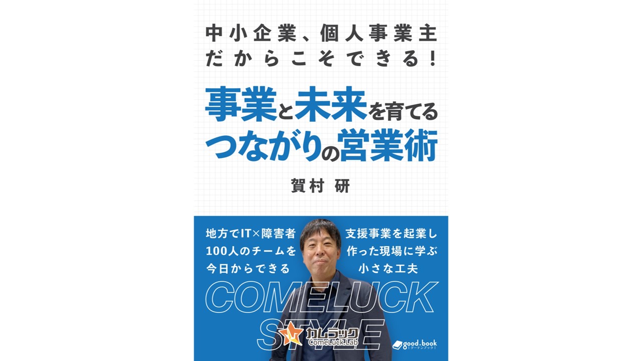 書籍『中小企業、個人事業主だからこそできる!事業と未来を育てる、つながりの営業術~地方でIT×障害者支援事業を起業して100人のチームを作った現場に学ぶ、今日からできる小さな工夫~』(著者:賀村 研)を発行いたしました。