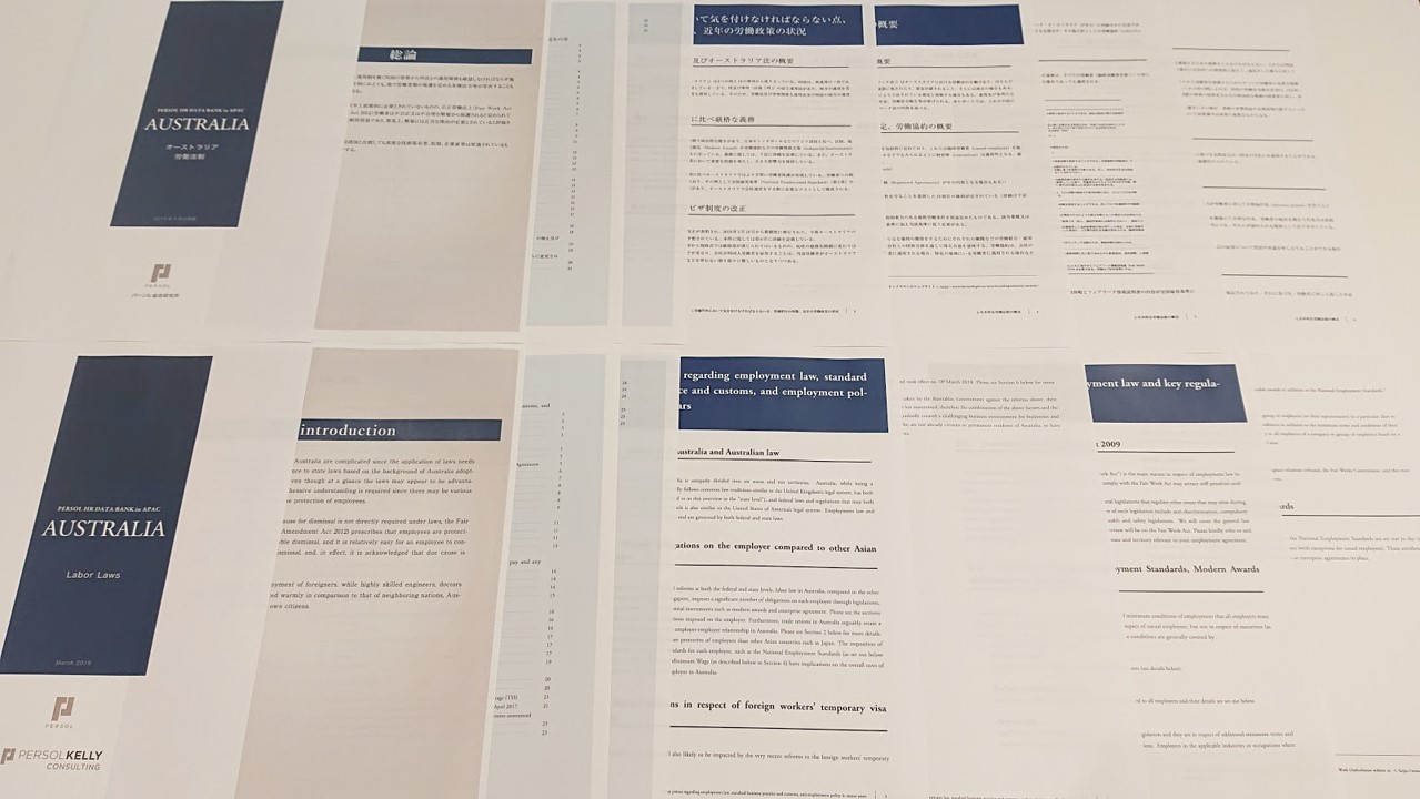 APAC13の国と地域の労働市場、労働法制に関するレポートをまとめたWebサイト(日英2言語対応)と、雇用法制など国・地域によって異なる法制度についてまとめた「労働法制レポート」、2種のレポートを2言語で制作しています。