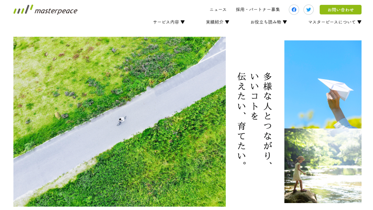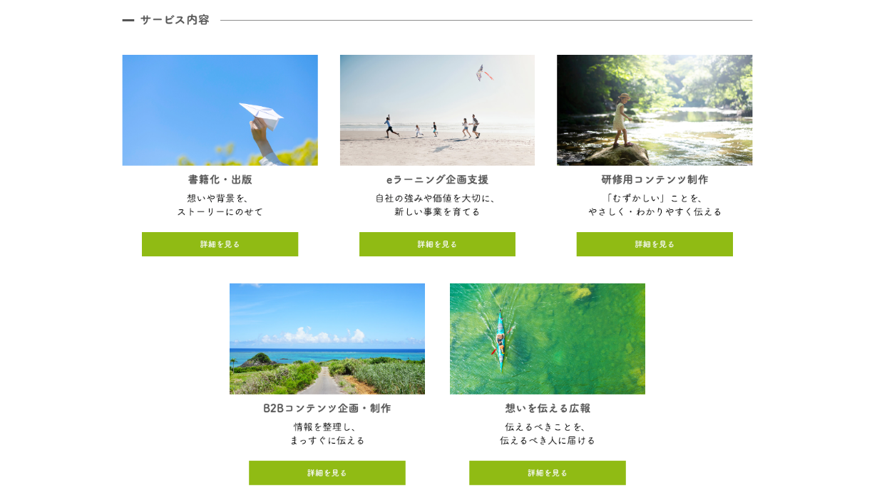 事業を通して実現したい「多様な人とつながり、いいコトを伝えたい、育てたい」という想いをよりまっすぐにお伝えすることを目指して、デザインを一新いたしました。また、当社のサービスを必要としてくださる方にとってよりわかりやすいページとなるよう、サービス内容を整理・細分化してご提示しています。
