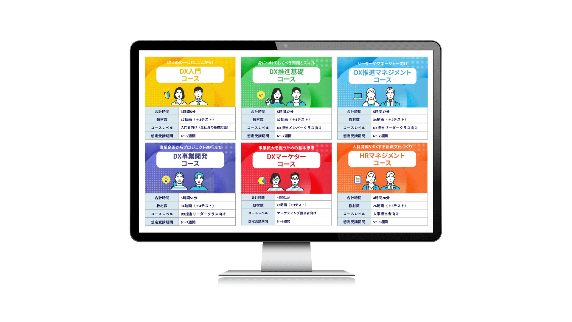 また、学習の習得度を測るための「理解度テスト」「修了テスト」の設計もご一緒させていただきました。新たに開講した「6つのコース別学習カリキュラム」内にて、DX学習の目標に合わせて体系的に学べるプログラムです。