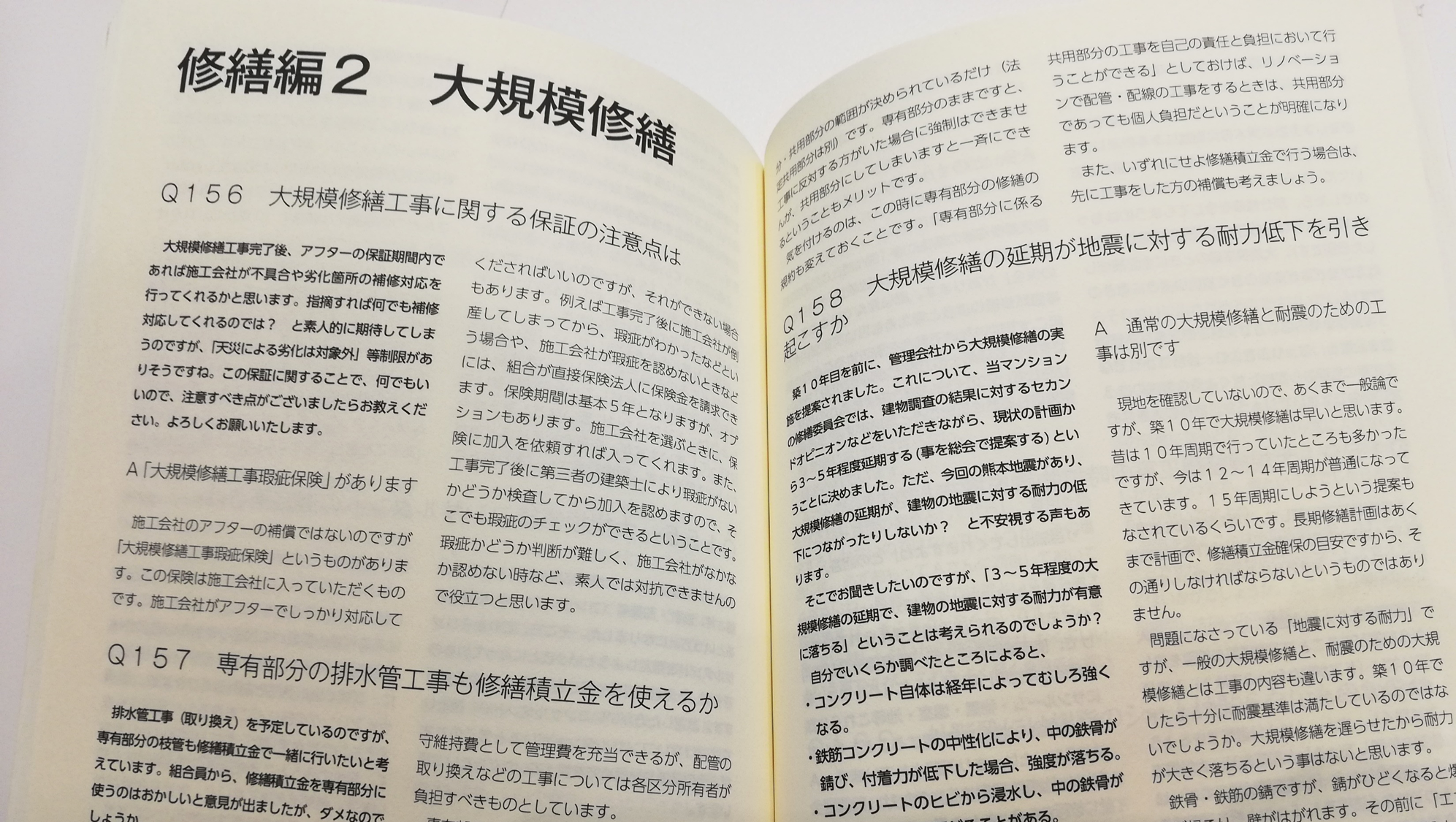 本書はマンション管理特化型Q&Aサイト「みんなの管理組合.com」に寄せられた疑問・質問に、マンション管理士である著者の祖堅様が専門的な立場と組合員・住民としての立場からアドバイスした回答をまとめて書籍化しました。Webサイト上の大量のQ&Aをカテゴリ別に整理し直して、特に重要度の高い情報のみを書籍化しました。Web閲覧による体験とはまた異なる見やすさが書籍にはあります。貴重な情報・ノウハウをひとりでも多くの読者に届けるための方法として、「マルチチャネル展開による書籍化」をご支援しております。